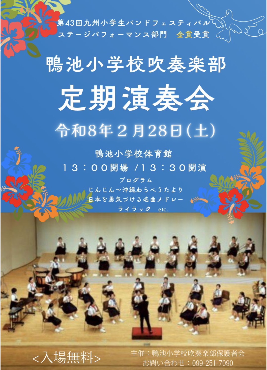 【告知】鴨池小学校吹奏楽部 定期演奏会が開催されます♪