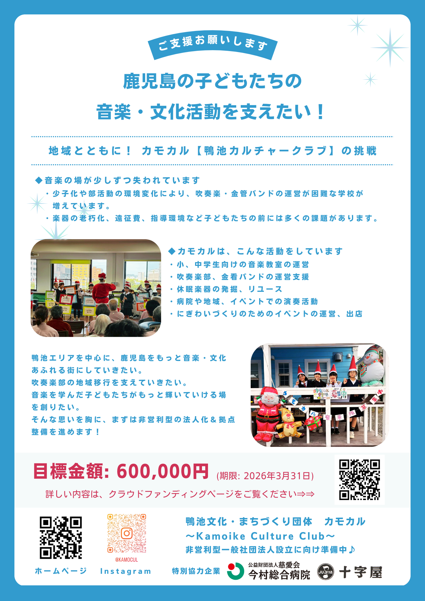 このたび、カモカル(鴨池カルチャークラブ)は、子どもたちの音楽・文化活動を長く